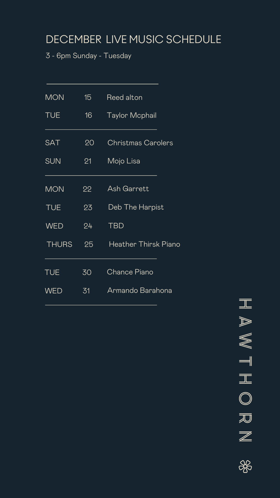 Every Sunday to Tuesday from 3 - 6pm, sip on cocktails and unwind to the soulful sound of live music.
